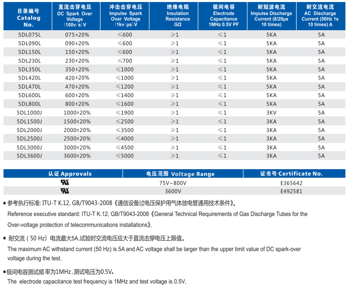 5DL Φ5.5x6 陶瓷氣體放電管介紹: