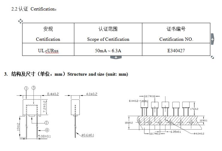 2.1執(zhí)行標(biāo)準(zhǔn):IEC60127-1 IEC60127-3 GB9364.1 GB9364.3
