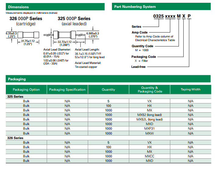 力特325 系列 - 3AB Slo-Blo? 軸向引線陶瓷管保險(xiǎn)絲: