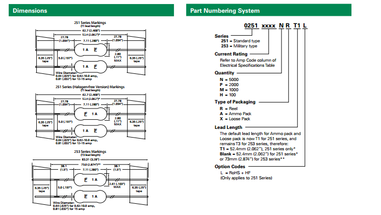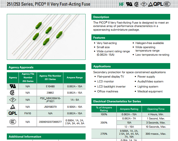 251 系列 - PICO? II特快熔斷超小型軸向引線式保險絲: