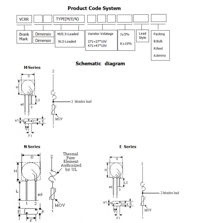 ?壓敏電壓范圍從(200V-1800V) ?符合RoHS,Reach標準,無鉛 ?專利的集成熱保護裝置 - ?旨在促進符合UL1449第3版SPD產品 ?高峰值浪涌電流額定值高達10kA ?波可焊 ?標準引線形式和間距選項 ?低泄漏 ?-55°C至+ 85°C的工作溫度范圍
