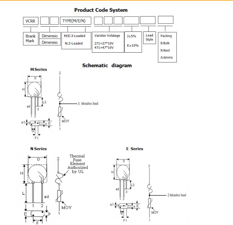 ?壓敏電壓范圍從(200V-1800V) ?符合RoHS,Reach標準,無鉛 ?專利的集成熱保護裝置 - ?旨在促進符合UL1449第3版SPD產品 ?高峰值浪涌電流額定值高達10kA ?波可焊 ?標準引線形式和間距選項 ?低泄漏 ?-55°C至+ 85°C的工作溫度范圍