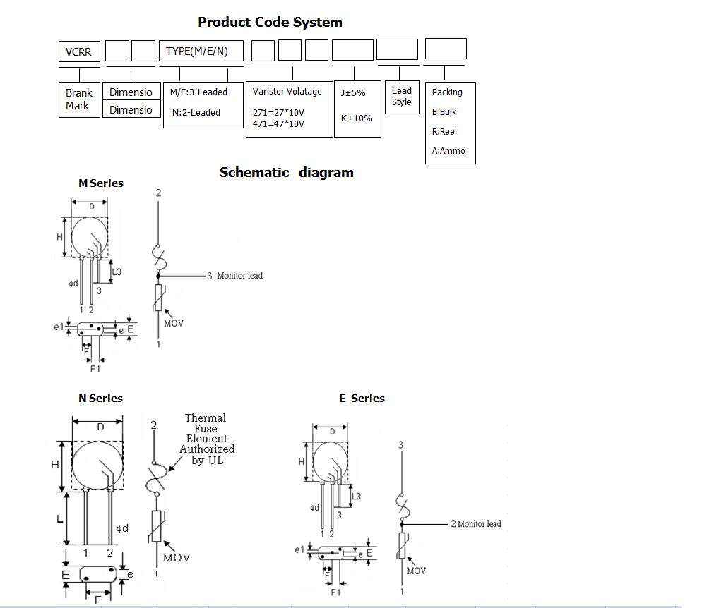TMOV10D系列?壓敏電壓從(200V-1800V) ?符合RoHS,Reach標(biāo)準(zhǔn),無鉛 ?專利的集成熱保護(hù)裝置 - ?旨在促進(jìn)符合UL1449第3版SPD產(chǎn)品 ?高峰值浪涌電流額定值高達(dá)10kA ?波可焊 ?標(biāo)準(zhǔn)引線形式和間距選項(xiàng) ?低泄漏 ?-55°C至+ 85°C的工作溫度范圍