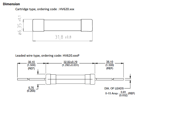 熔斷器HV620 1000vAC/DC 200mA-3A