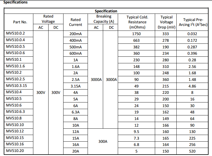 MV510 series 300VAC/DC 200mA-20A