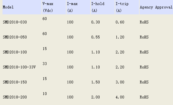 自恢復保險絲型號選擇: